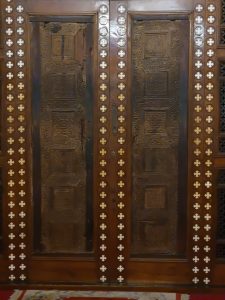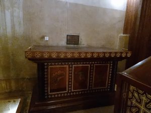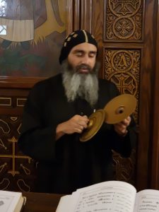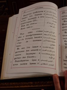 The bible in Coptic language on the left and Arabic on the right. Coptic is the latest variation on the original Egyptian language. A bit like latin, it is only read, and not a spoken language anymore.
