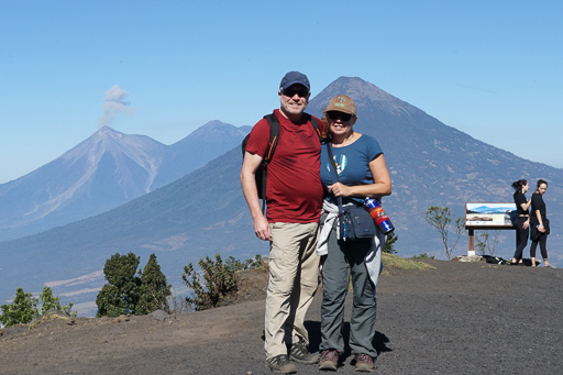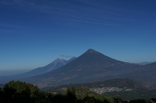 View over to Agua, Acatenango, and Fuego volcanoes