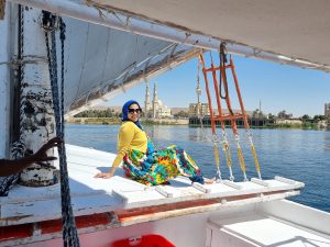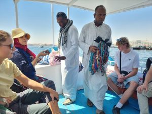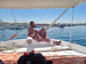After returning from Philae, we took a Fellucca boat to a Nubian village. The Nubians were the people who inhabited Upper Egypt.