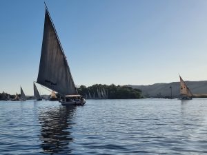 Then it was time to head back North, down the Nile. This time we were sleeping out on mats on board the traditional Fellucca sailing boat. There were actually two Felluccas, and a support boat (with an engine) which could help tow us if necessary, and also where the toilets and kitchen were.