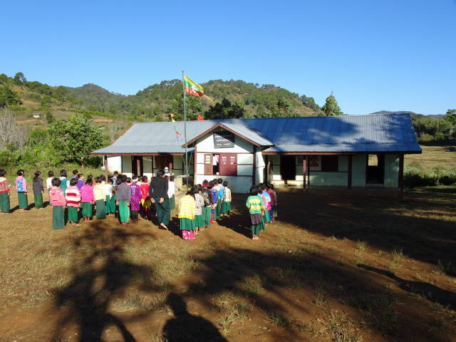 We visited a local school. The kids lined up and sang the national anthem and recited their times tables.