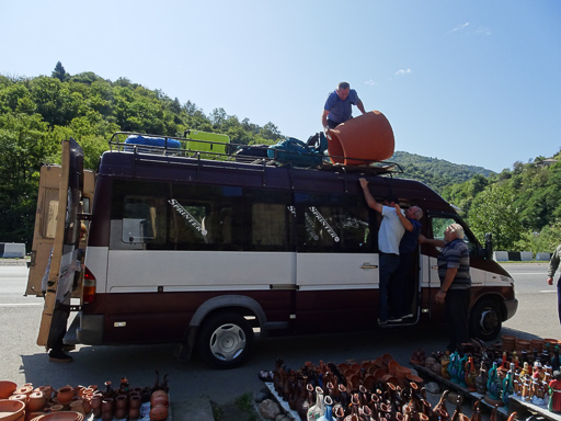 We spent over 6 hours in a Marshrutka shared mini-bus to Batumi. En-route the driver stopped to put a clay pot on the roof. There was a big argument later with the owner when the pot cracked from the rough roads. The driver was stopped and fined by the police twice. The first time when overtaking he had to break and rejoin the line of vehicles when a car came the other direction. It just happened to be a police car so he was fined for dangerous driving. Shortly after that he was stopped again for speeding. Not a very profitable trip for him.