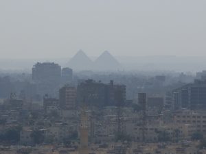 From the bus, we caught our first glimpse of the Giza pyramids in the distance.