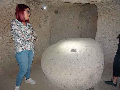 There were a few round doors which could be rolled across to block the tunnel entrances. The doors had a peep hole (spear hole?) in the middle.