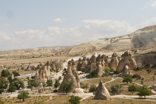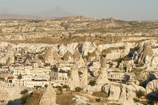 Cappadocia is the world-famous site with lots of strange rock formations with cave dwellings and “fairy chimneys”. They were formed by lava deposits of basalt, a hard rock, on top of the soft sandstone which has eroded away except where it is protected by a basalt cap. The name Cappadocia derives from “the land of beautiful horses”.