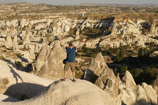 We took a taxi from Batumi to the Turkish border and then a Dolmus (Turkish name for Marshrutka shared mini bus) to a town called Hoppa. There we hopped (sic) on an overnight bus to Nevsehir in the Cappadocia region. The bus journey was over 17 hours, and Michelle was upset at how long Ronnie managed to sleep.