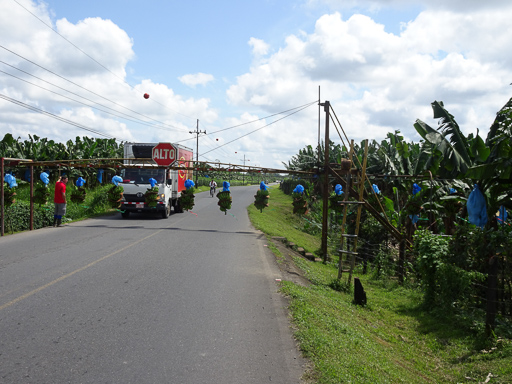 After a night in a small hotel near San José airport, we got a mini-van transfer to La Pavona on the Caribbean coast where we caught the boat to Tortuguero National Park. On the way, we passed many farms. Being fairly near the equator, Costa Rica has a year-round warm climate with lots of rain, so it’s easy to grow crops. There were many banana plantations.