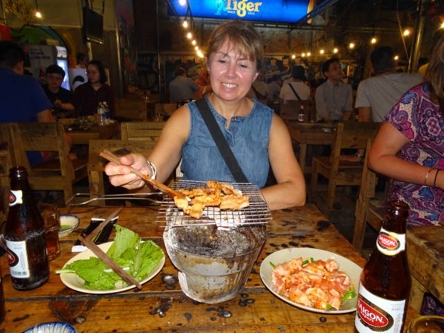 We went for more street food for dinner. This time we were given a barbecue to put on the table and cook our pork and shrimps ourselves.