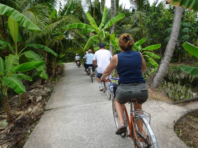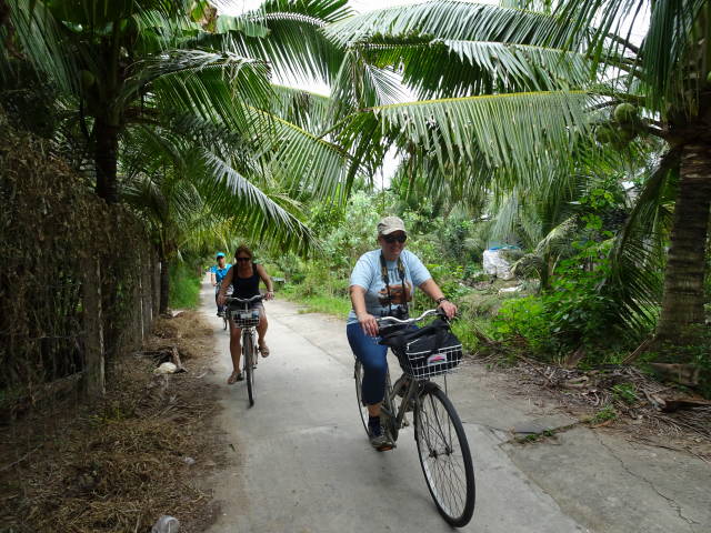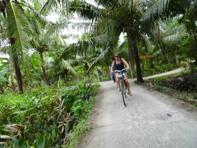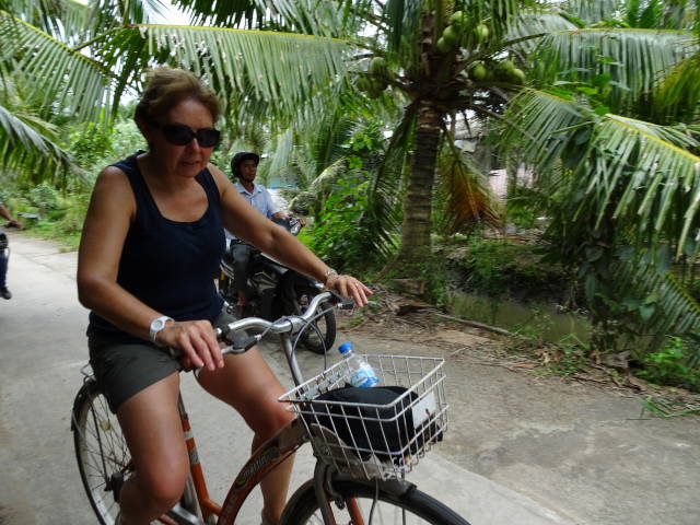 We went ashore for a 13km bike ride around the local villages. Michelle was really happy about that (not). We were following the leader who was on a scooter. I guess it was a Vietnamese Keirin track cycling race.