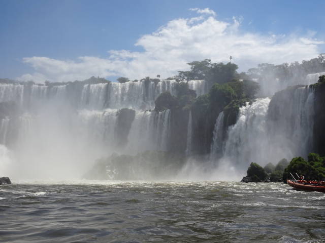 We took a very powerful speedboat right up to (into!) the falls. It was really exhilarating. As the temperature was around 40 deg. C,, getting soaked was really refreshing.