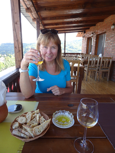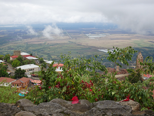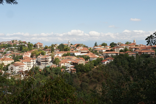 We took a shared mini-bus (Marshrutka) to the Georgian border and then shared a taxi with a kiwi woman to Sighnaghi in the Khakheti wine region. The taxi was a beat-up old Mercedes and the taxi driver was constantly crossing himself which didn’t inspire confidence… and he was lucky enough to be wearing a seatbelt – our ones in the back didn’t work.