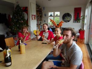 We decided to do Christmas differently and have an “upside down” Christmas. So we did Turkey kebabs on the barbie. In keeping with the Kiwis’ lukewarm acceptance of Christmas we couldn’t find Brussels sprouts anywhere. Probably not a bad thing, but they would have looked good on the skewers with the cubes of turkey. For dessert we had Christmas pudding ice-cream.