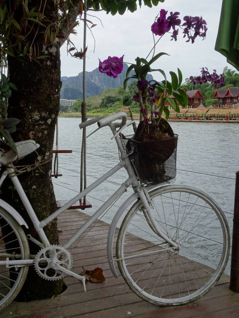 We stayed only one night in Vang Vieng as it’s pretty tacky. This used to be the adventure capital of Laos. You can hire Buggy cars, motorbikes, and push-bikes; do zip-lining; and the highlight – go water tubing on the Mekong. There was a clamp-down a few years ago after 22 tourists drowned in the river in one year. That was drink-and-drug assisted.