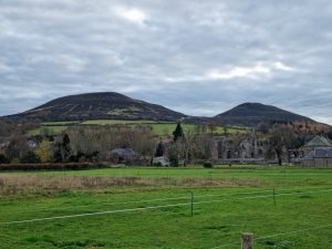 Trimontium was a very significant Roman site, although there’s not much left to see now. It was named after the surrounding, prominent Eildon hills – Trimontium is “three mountains” in latin.