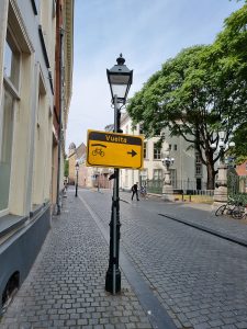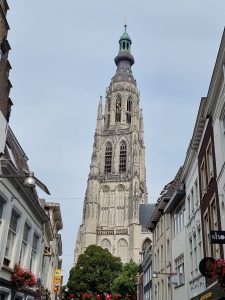 Breda is a pretty little town, built on canals (no surprise there!). We cycled in from our campsite. When we arrived, the church bells were ringing. It wasn’t your usual church peals, but the latest Robbie Williams track.