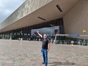 Ronnie revisited Central station which he cycled past a couple of months earlier on his trip from Scotland to Schengen.