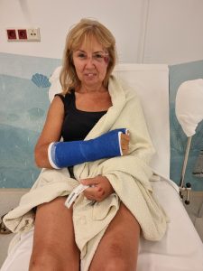 Michelle had multiple fractures in her right hand, a fractured big toe socket, and a hairline fracture of her sinus.