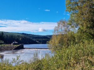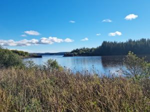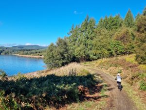 We took the bikes to Kielder Water. Kielder is the largest man-made lake in the UK. Michelle decided to set herself a new distance record by cycling around the lake – just over 26 miles. A marathon.
