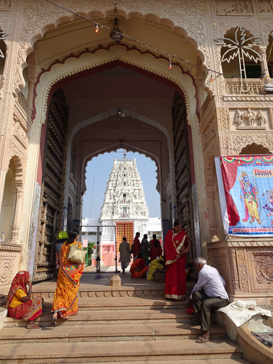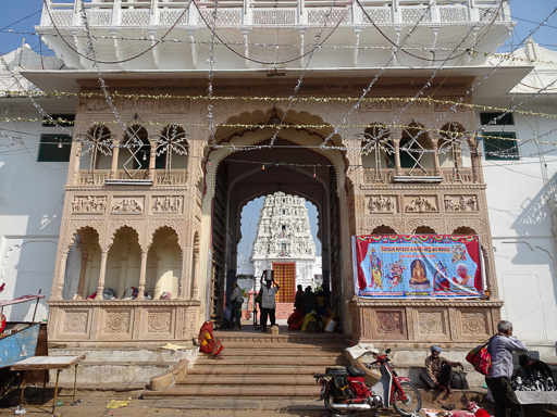 Pushkar is an oasis in the desert with three lakes, and therefore an important meeting place. It’s a very important holy site for Hindus. It’s the site of the only “proper” Brahma temple. Brahma is the Creator, one of the top three Hindu gods, the others being Vishnu and Mahesh. The other two gods have many temples. Like Mecca for Muslims, Pushkar is somewhere that all Hindus aim to visit at least once in their lives. They visit the Brahma temple and go to bathe in the lake to purify their sins.