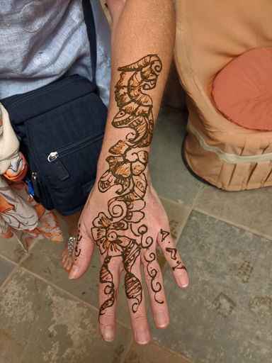 Michelle was desperate to get some Henna done. After eating Indian food, it’s the next step to becoming Indian.
