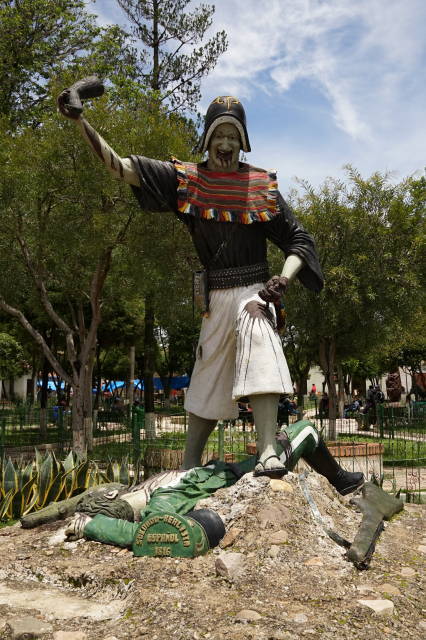 Victorious indigenous statue – maybe still some resistance to Colonisation?