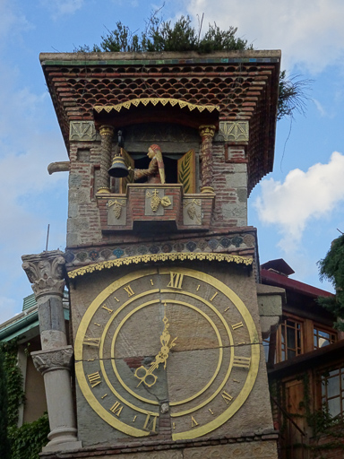 There is a very artistic clock tower. An angel comes out an chimes the bell every hour. Twice a day, there is an automated puppet show also.