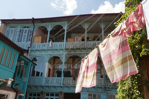 Many of the oldest buildings were destroyed during the Soviet period, but a few still remain. This one is one of the oldest and shows very interesting social design where the families all share balconies. This creates a very integrated community.