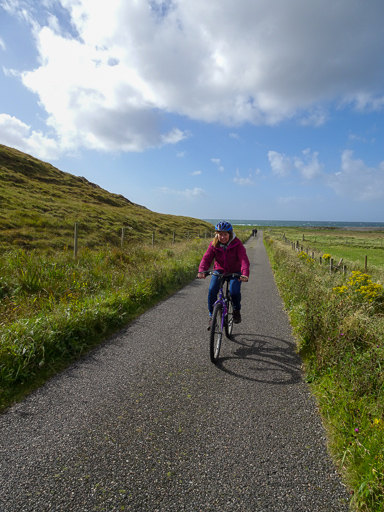 As compensation for cycling (and pain relief!), Michelle got to have some of the latest, local Gin. We bought it from Angus, who’s son owns the distillery. Again, it is infused with seaweed. Michelle preferred it to the Harris one.