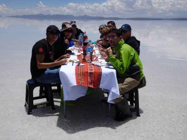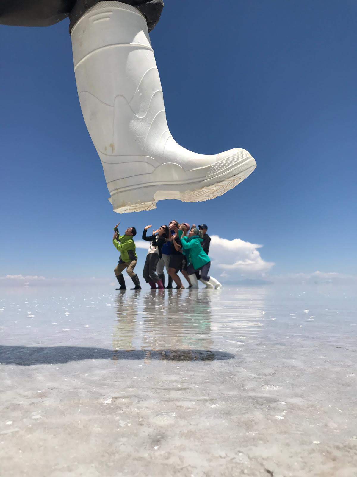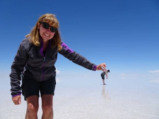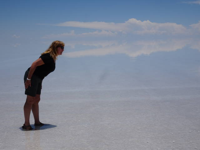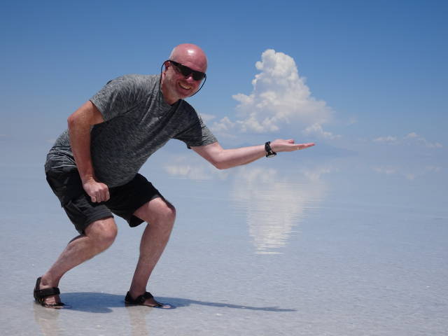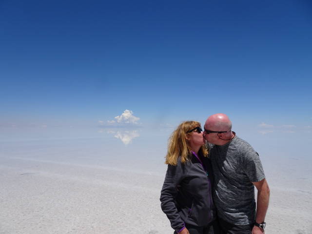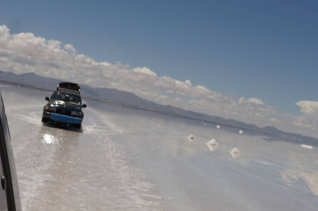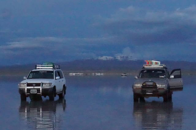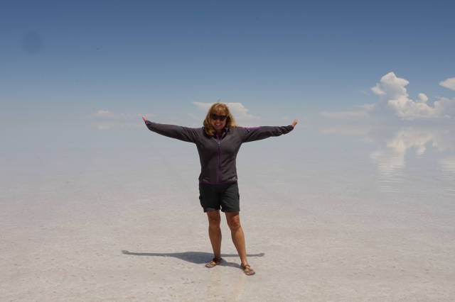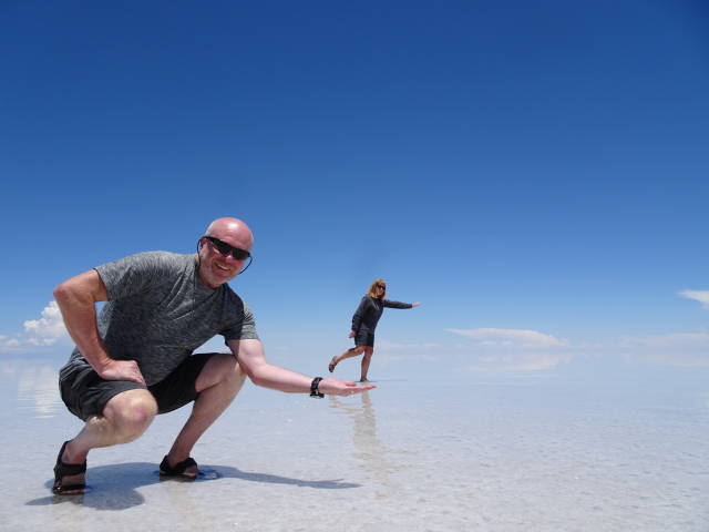 At this time of the year, the salt flats are flooded by just a few inches of water. Apparently this is better as you then get lots of reflections too.