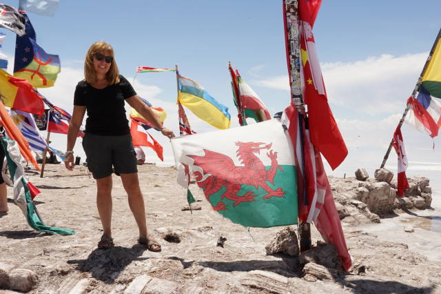The Dakar rally came to the salt flats. The drivers left various flags. We found a Welsh one. (The Scottish one isn’t shown as it sported political propoganda – pro-independence).